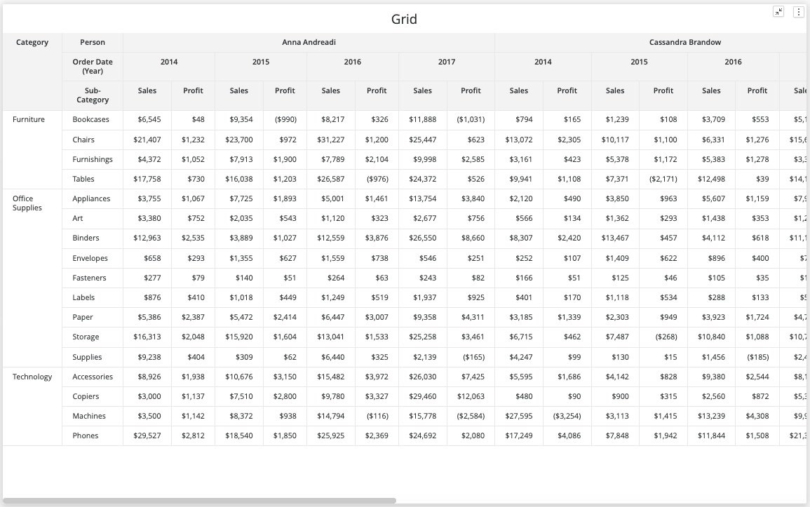 A Grid is a tabular display of data, similar to a spreadsheet, for easy viewing and comparison.